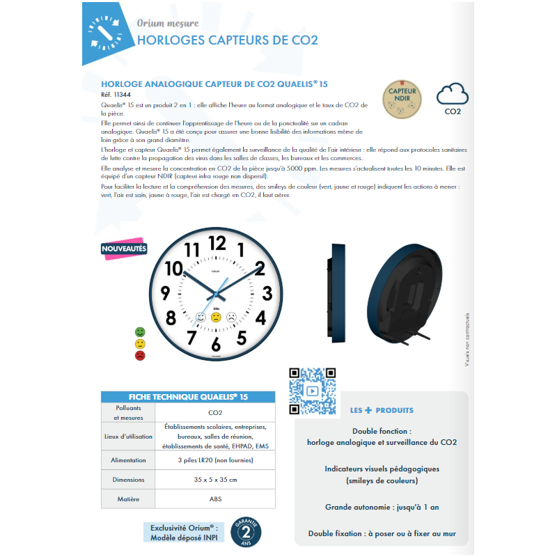 Horloge CO2 35 cm Orium Blanc + Bleu