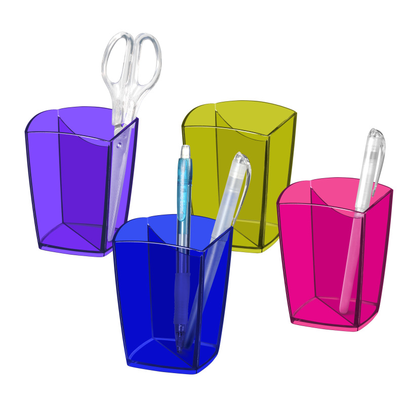 Pot à crayons à 2 compartiments Happy bleu électrique
