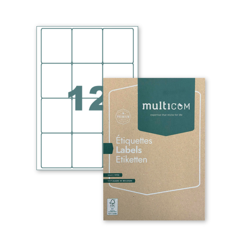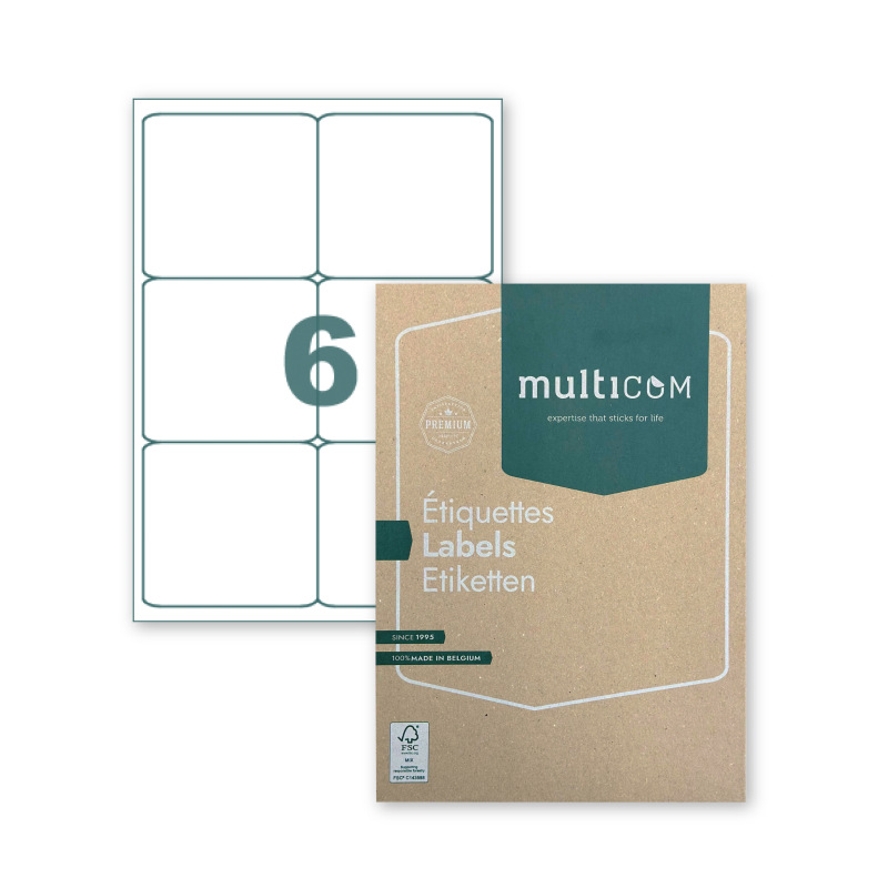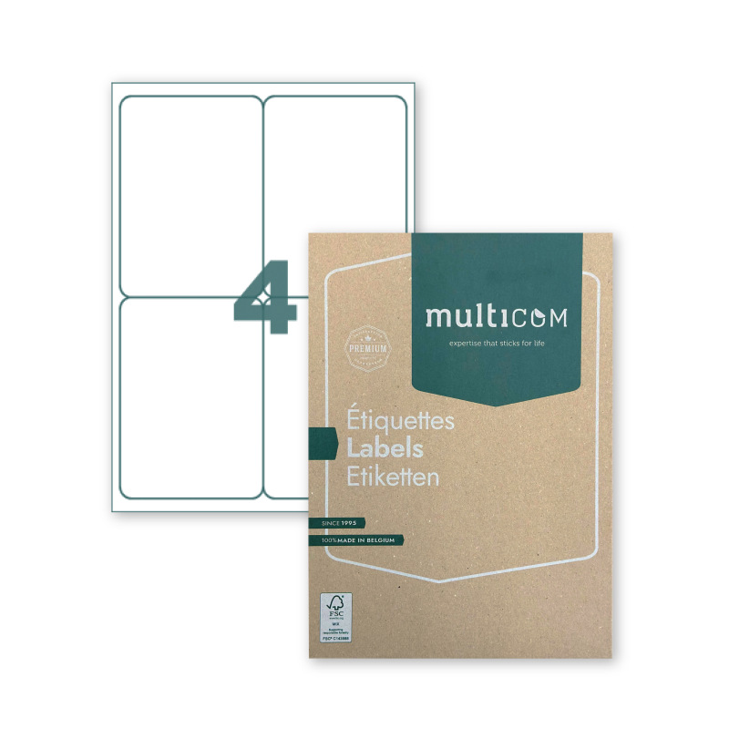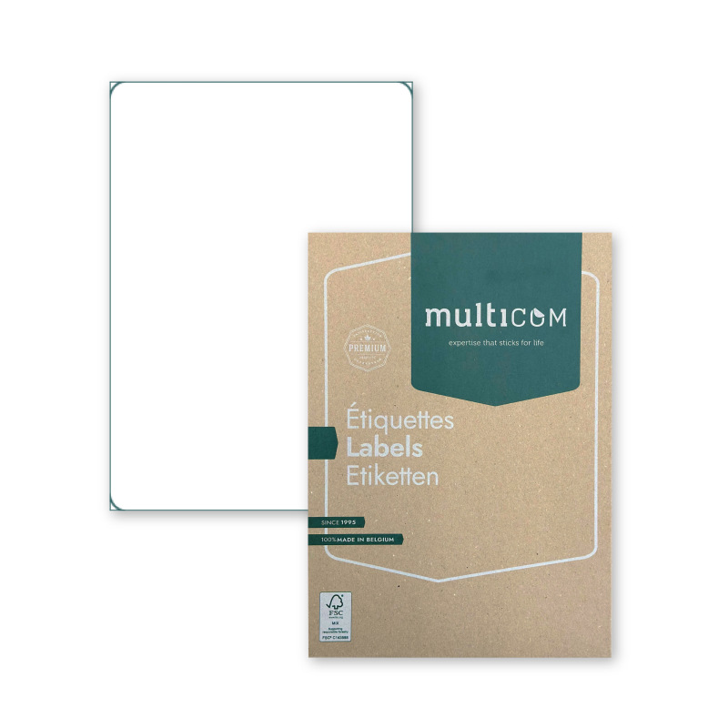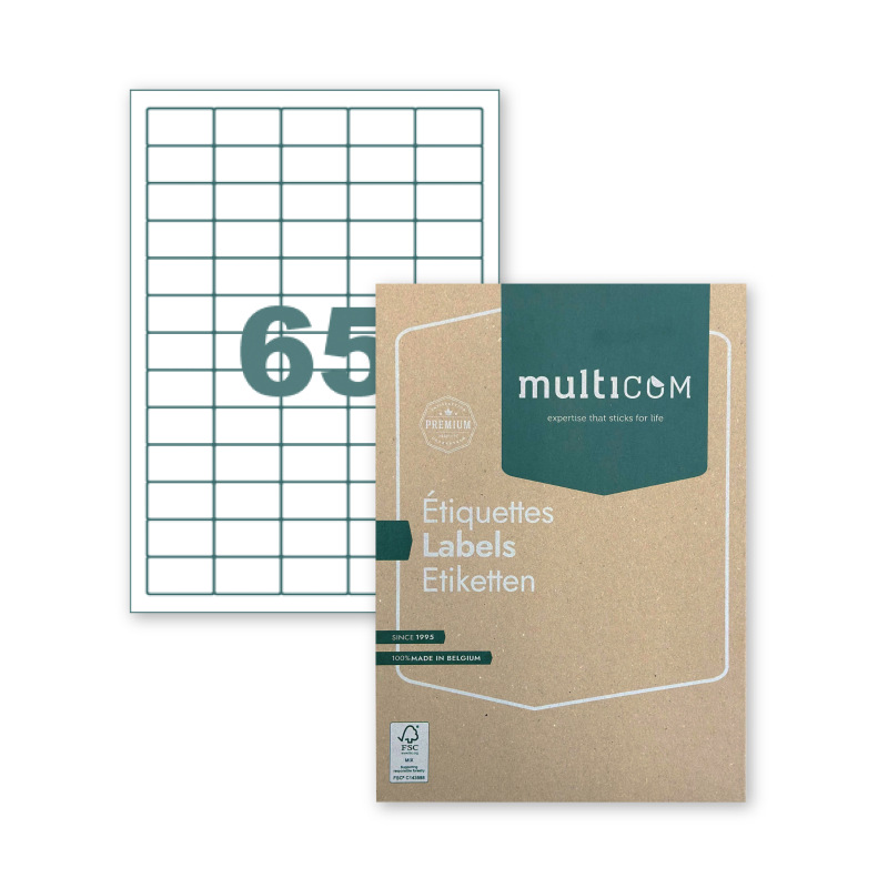 Etiquettes blanches - adhésives et permanentes sur A4 Arrondis -Boîte de 100 -PCL65 - 38.1 x 21.2mm - 65 par feuille