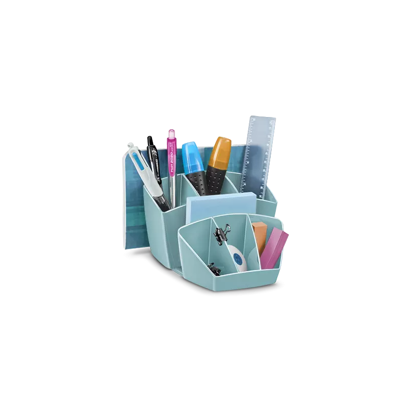 Le pot à crayons avec 8 compartiments permet de séparer les objets efficacement. Chaque compartiment peut accueillir jusqu’à 20 stylos ou 5 surligneurs. En polystyrène antichoc, très brillant et résistant, il est disponible en plusieurs couleurs et finitions.