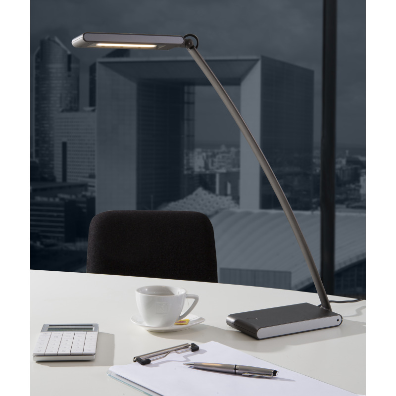 Équipée de la toute dernière technologie LED, cette lampe de bureau au design raffiné apportera une touche d'élégance à votre espace de travail. Son socle stable intègre un interrupteur tactile ainsi qu'un port USB pratique pour recharger vos appareils. Son bras articulé et sa tête ajustable permettent d'orienter la lumière selon vos besoins, offrant un confort visuel optimal pour travailler efficacement.