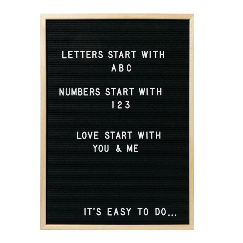 Met de verwisselbare letters creëer en verander je heel gemakkelijk je inspirerende, motiverende, muzikale en informatieve quotes. Je kunt het letterbord ophangen met een haakje aan de achterkant. Ideaal om je huis persoonlijker te maken en handig op kantoor, op café en op restaurant. Zwart vilt met houten frame. Inclusief 149 stuks. Verwisselbare witte letters en cijfers van 2,5 cm hoog. Extra lettersets kunnen apart worden aangekocht.