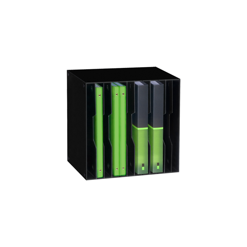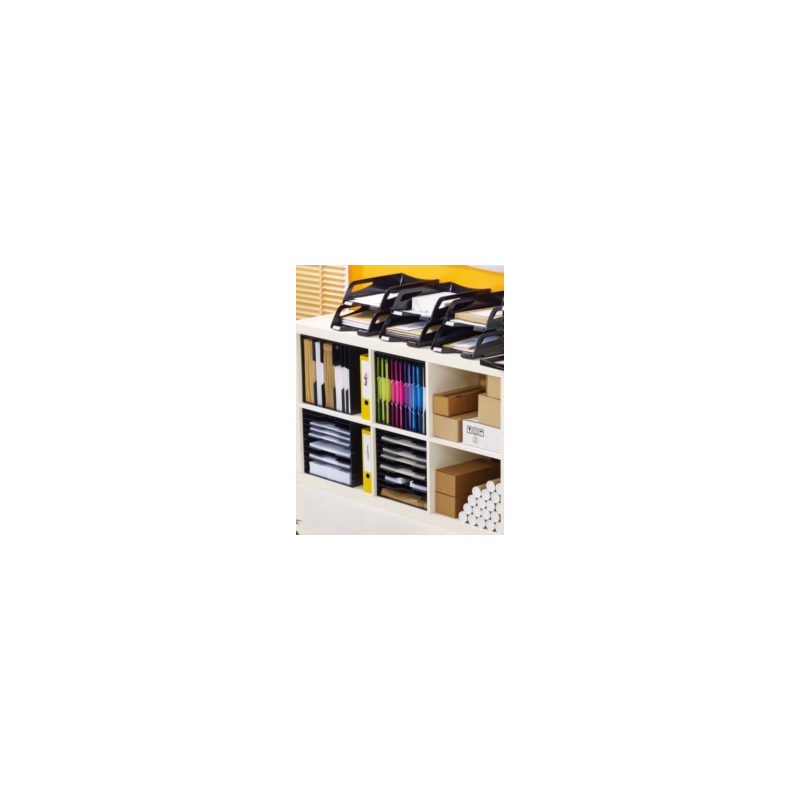 Deze elegante opbergmodule heeft 12 vakken. Je kunt de verwijderbare tussenschotten om de 25 mm verstellen. Daarnaast kun je de module uitbreiden tot een echt opbergmeubel door de vakken naast en op elkaar te plaatsen. De opbergmodule is zeer praktisch en je kunt hem zowel horizontaal als verticaal gebruiken om dossiers, mappen en andere documenten in op te bergen. Je kunt hem op de grond of op een kast plaatsen. Bovendien is de module stapelbaar.