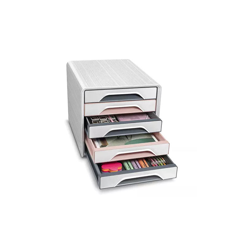 Opbergmeubel met 5 laden Mineraal roze Blanc + Gris -Rose poudré