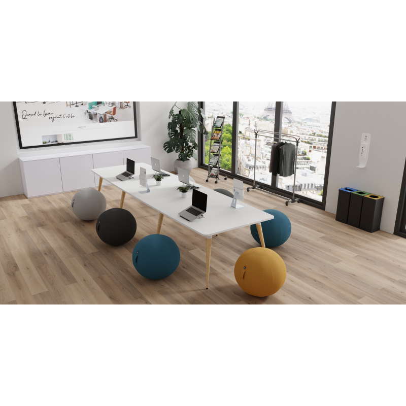 Ergonomische zitbal voor een dynamische zithouding en een sterker lichaam. Deze lichte bal is gemakkelijk te verplaatsen dankzij het geïntegreerde handvat en is bekleed met een elegante stof die afneembaar is via een ritssluiting en in de wasmachine gewassen kan worden op 30°. Wissel af tussen je bureaustoel en de Ergoball voor optimaal comfort en maximale productiviteit. Verkrijgbaar in verschillende kleuren en met bekleding in diverse texturen. Het maximale draagvermogen is 120 kilo.