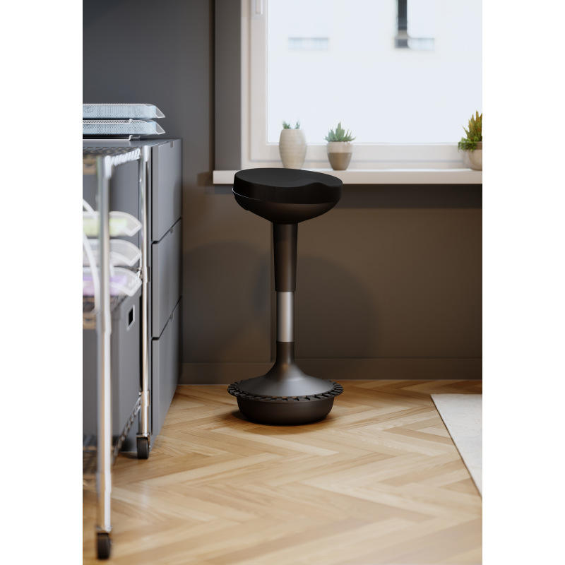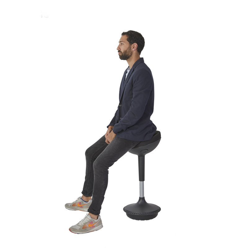 De kruk is ergonomisch, stimuleert een goede lichaamshouding en versterkt de rugspieren. Je kunt de hoogte van de kruk aanpassen met 2 hendels aan de onderkant. De kruk draait waardoor je een horizontaal schommeleffect krijgt.