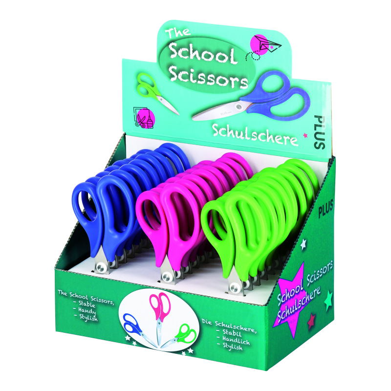 Ontdek onze display met 24 schoolscharen van het merk Plus, speciaal ontworpen om te voldoen aan de behoeften van schoolkinderen. Het merk Plus staat synoniem voor kwaliteit, veiligheid en innovatie en biedt ergonomische scharen die perfect geschikt zijn voor dagelijks gebruik op school.