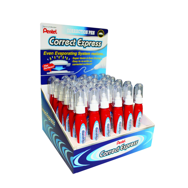 Correct Express van Pentel is een snelle en makkelijk te gebruiken concealer. De pen is makkelijk te hanteren en compact genoeg om in je etui te passen. Met een inhoud van 7 ml droogt de ondoorzichtige witte inkt snel, zodat je bijna direct kunt herschrijven. Ook verkrijgbaar in een 36-delige display.