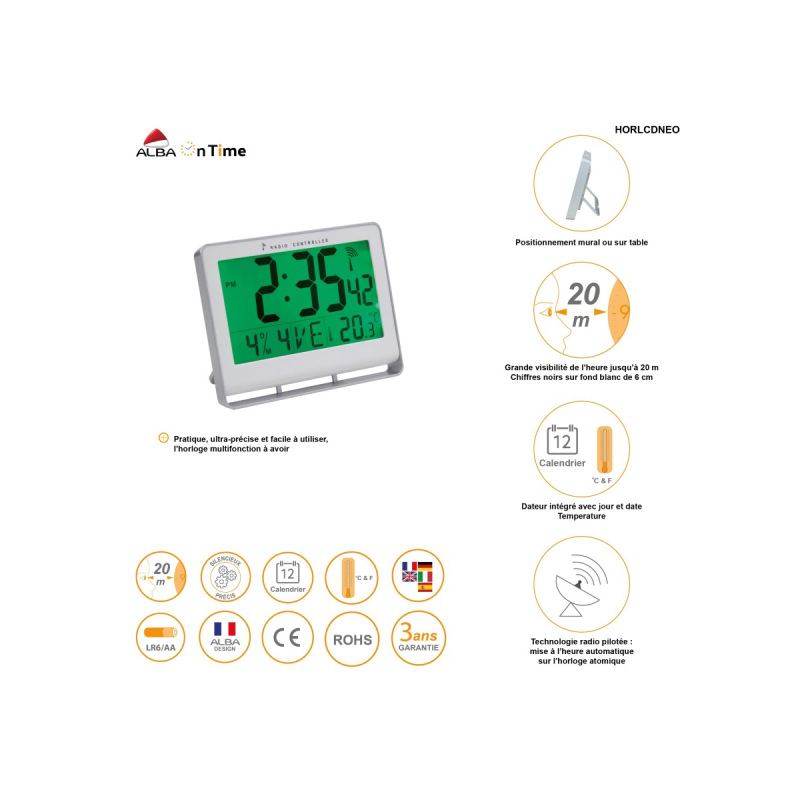 Digitale radiogestuurde klok LCDNEO / wekker Metaalgrijs