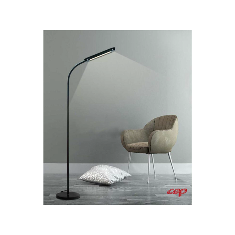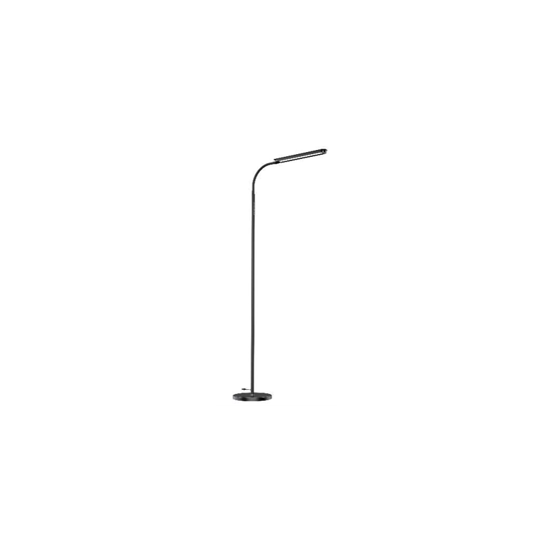 LED vloerlamp voor op kantoor of thuis. Maakt geen rommel op het bureau. Technologie voor extra brede verlichting. Het flexibele deel van de arm maakt precieze aanpassing van de verlichtingshoek mogelijk. Verlichting bovenop de kop om sfeerverlichting te creëren. Vermogen 24W. Spanning 24V-1A. Aluminium/staal/ABS-materiaal. 100% recyclebaar. Kleurtemperatuur 3000K/5700k. Helderheid 1100lm. LED type SMD/2835. CRI >95. Levensduur LED: 50.000 uur. Schakelaar met afstandsbediening. Dimmer en kleurregeling. Praktisch: de afstandsbediening magnetiseert aan het lamphuis. Afmetingen: Hoogte: 135 cm. Voet: DN: 20 cm. Kop: Lg: 35 cm Kleur: zwart. Stroomvoorziening: 230V standaard stroomkabel. CR 2032 batterij voor afstandsbediening inbegrepen.