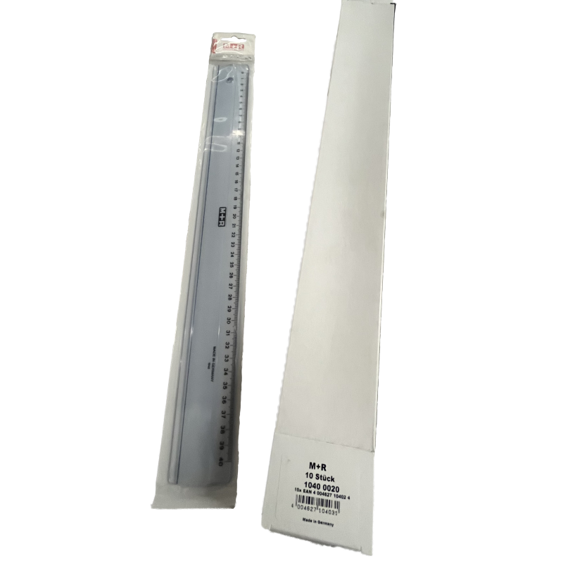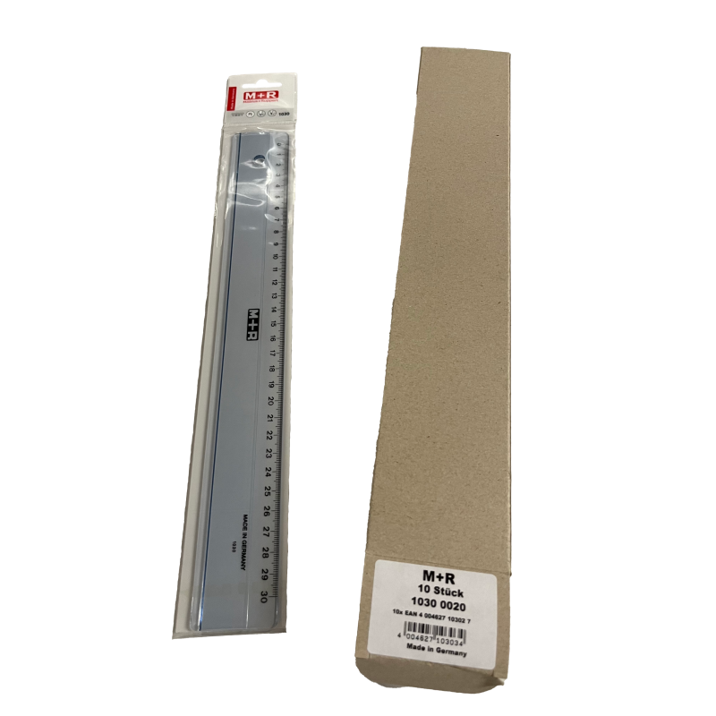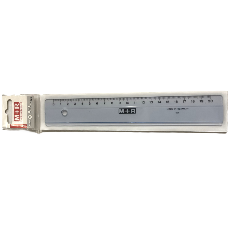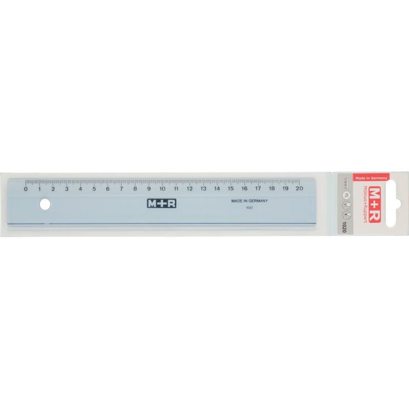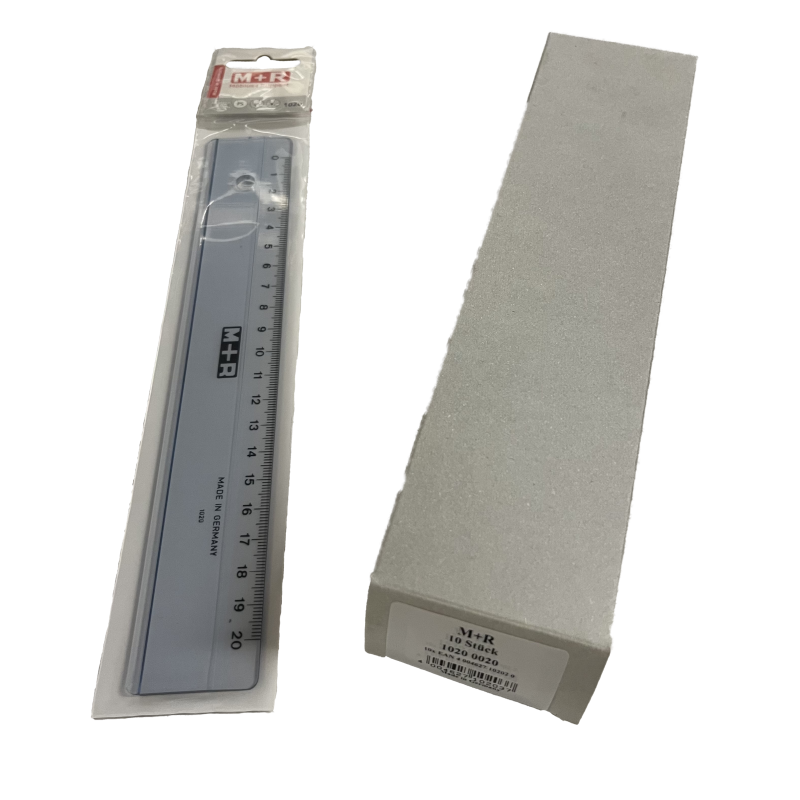 Grijze plastic liniaal met clip-on hoes 20 cm