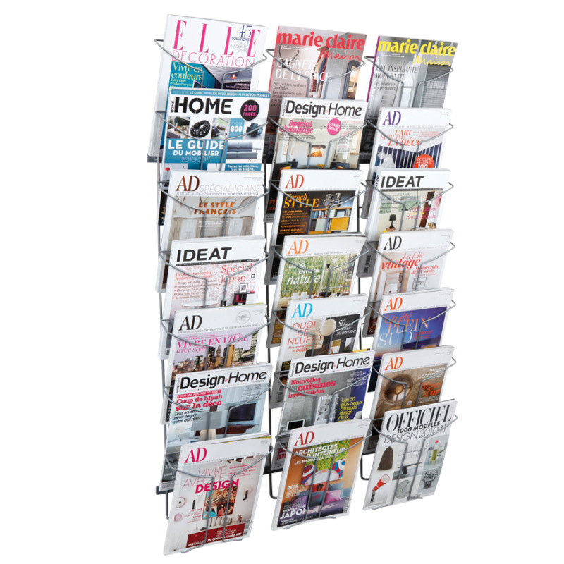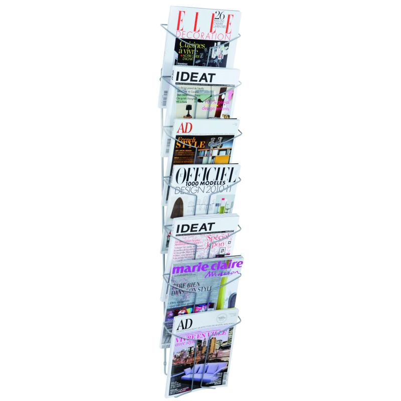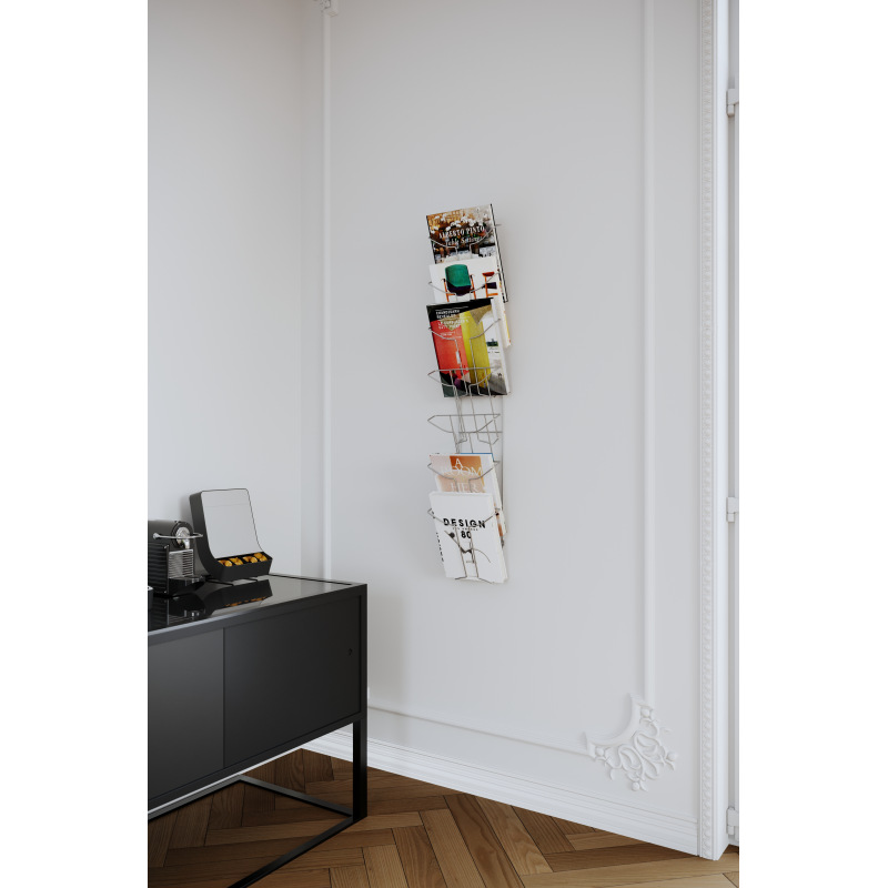 Wandfolderhouder in metaal A4 -7 compartiments -Metaalgrijs