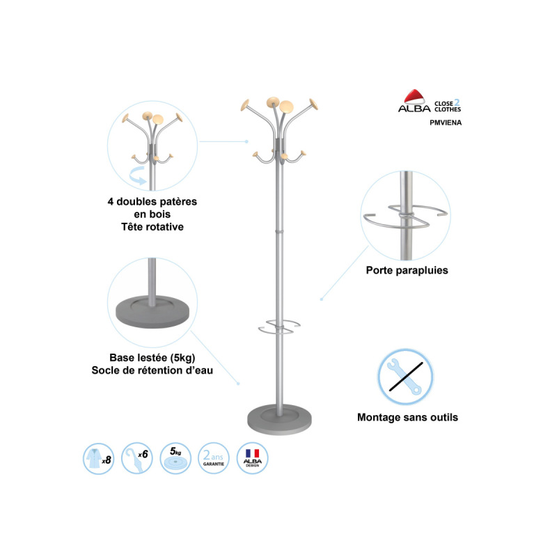 | Ophangcapaciteit | 8 kledingstukken + 6 paraplu's |