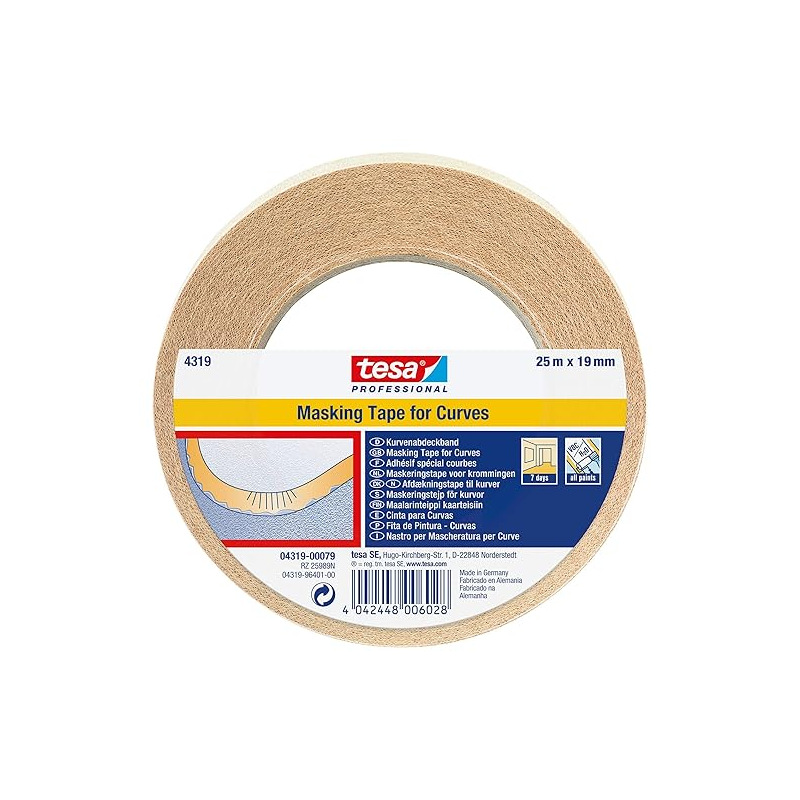 Tesa KREPP® masking tape courbes 19 mm x 25 M -Brun clair
