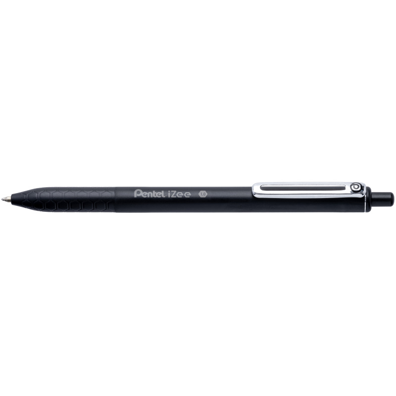 ‘Izee’ balpen van Pentel. De ‘Izee’ balpen van Pentel heeft een gripzone met honinggraatstructuur en bevat inkt met lage viscositeit, waardoor hij veel zachter schrijft. Daarnaast is het matte ontwerp stijlvol en fris, en zijn de kleuren uit het assortiment levendig en intens. Deze balpen is dus uitstekend voor dagelijks gebruik. Verkrijgbaar met een navulbare punt in 0,7 mm en 1 mm. Beschikbaar in verschillende kleuren.