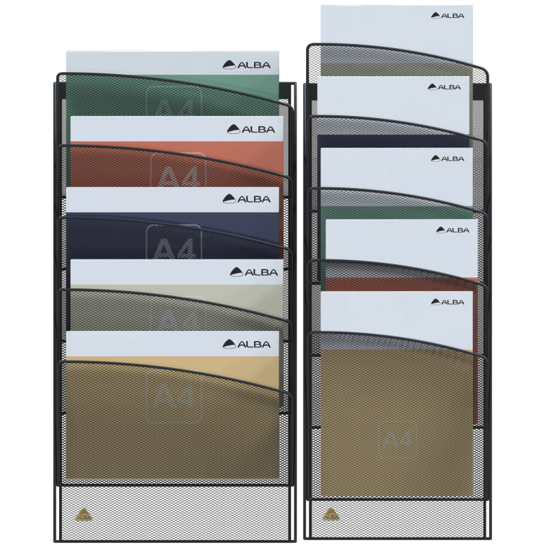 Wandhouder met 5 vakken in metaalgaas Zwart -A4 portrait